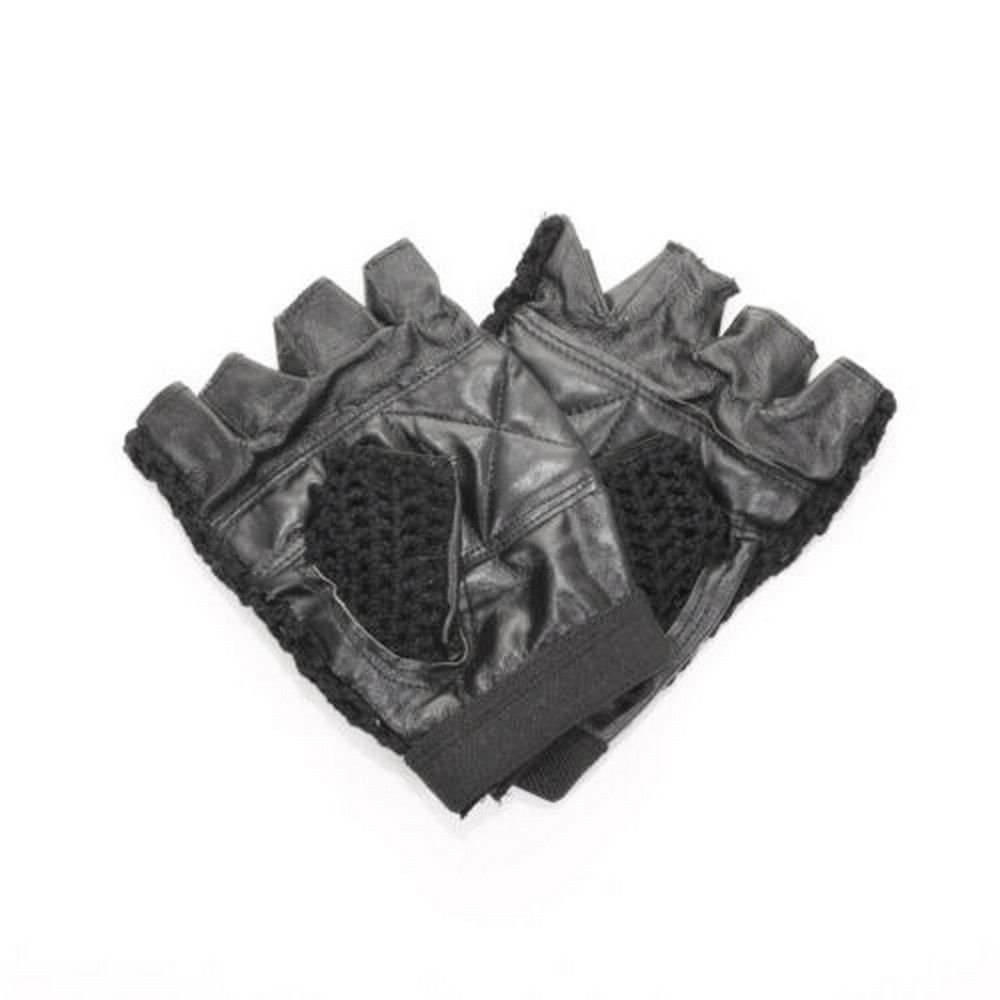 Stylish black weightlifting gloves designed for heavy lifting. Made from leather-like material with a textured palm for superior grip. Features a knitted palm for added cushioning and a touch fastening system for easy wear.