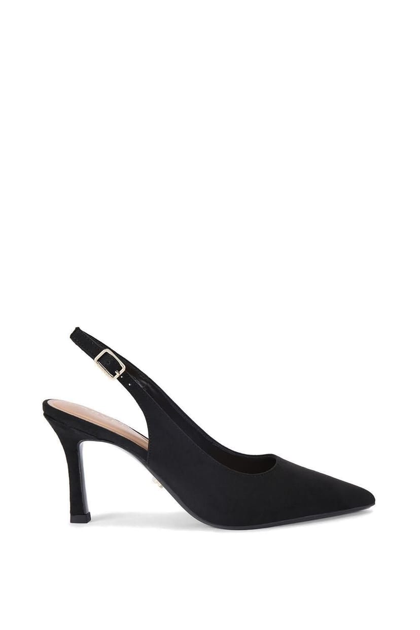 The Carvela Black Microsuede Slingback Heels is made from microsuede.