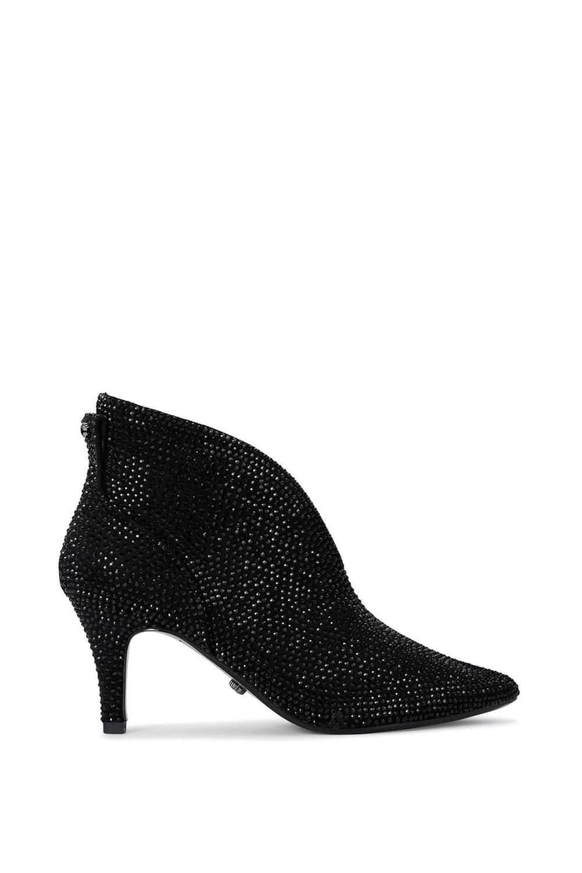The Carvela Women's Flute Shoe Boot in Black is made from microsuede, crystal.
