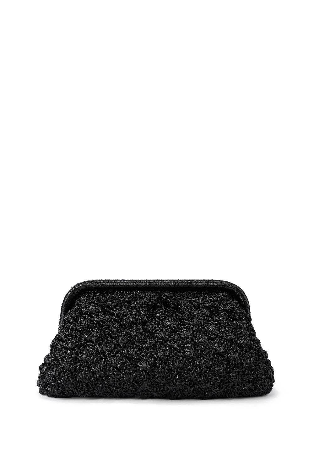This Gabriella Clutch Bag is crafted from a black woven fabric with a soft structure. Ideal for evening events or special occasions.