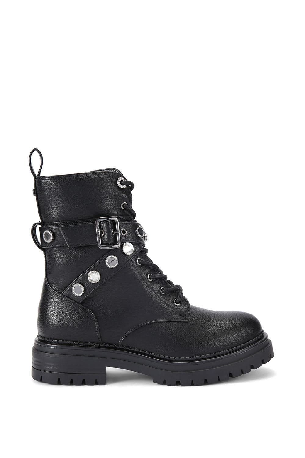 The Carvela Women's 'Headline Combat Coin' Boots in Black is made from leather alternative, crystal.