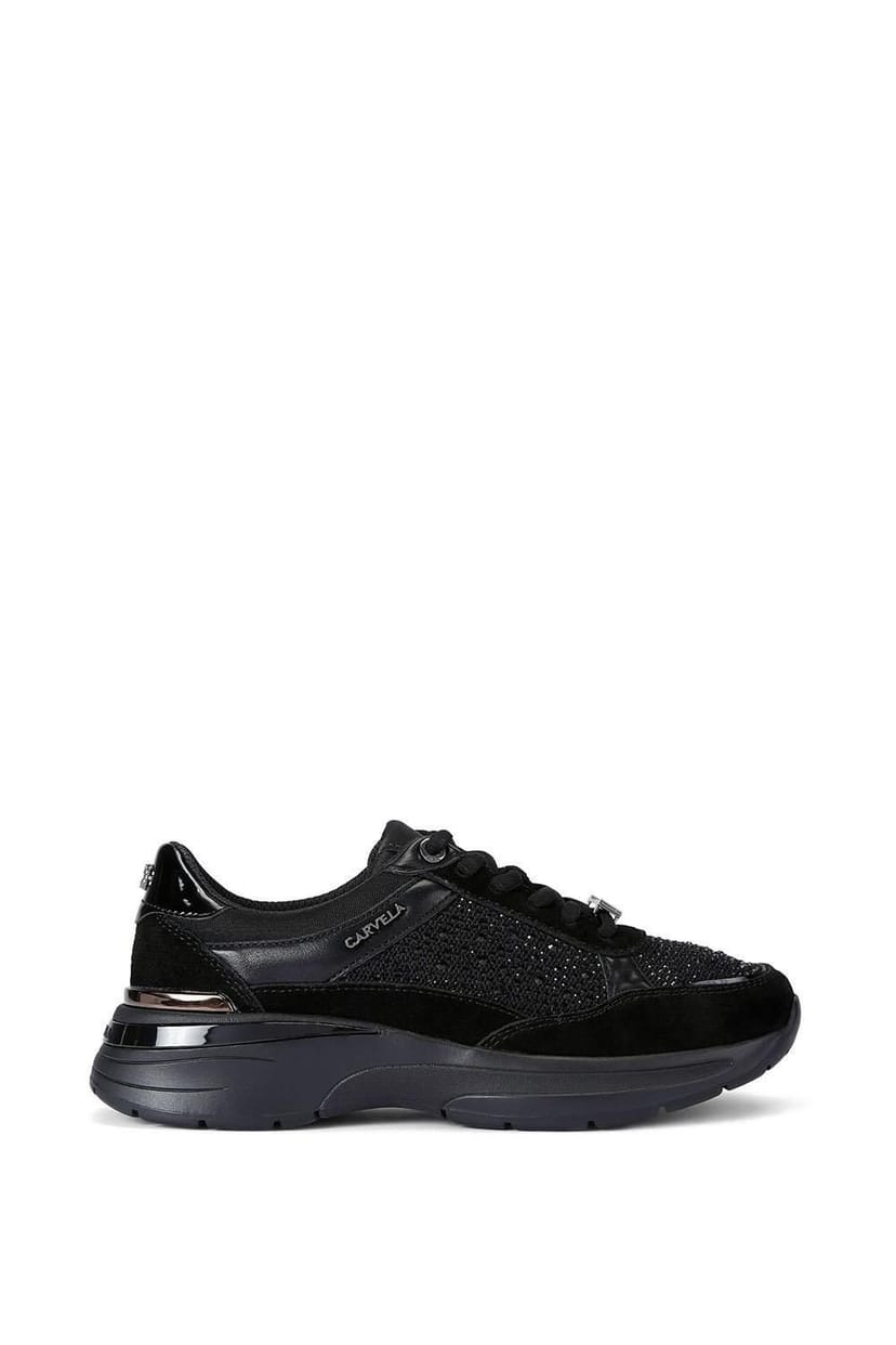 The Carvela Women's 'Presto' Trainers in Black is made from suede, crystal.