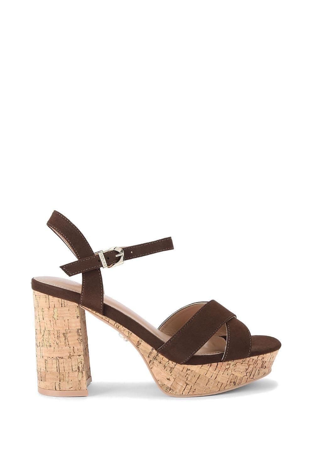 The Carvela Brown Microsuede Cork Heel Sandals is ideal for evening, party, date-night.
