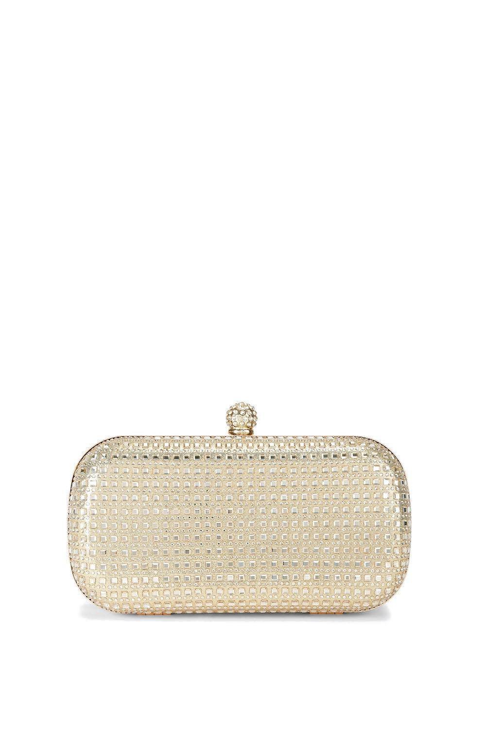 The Carvela Gold Crystal Hard Clutch Bag is ideal for evening, party, special occasion.
