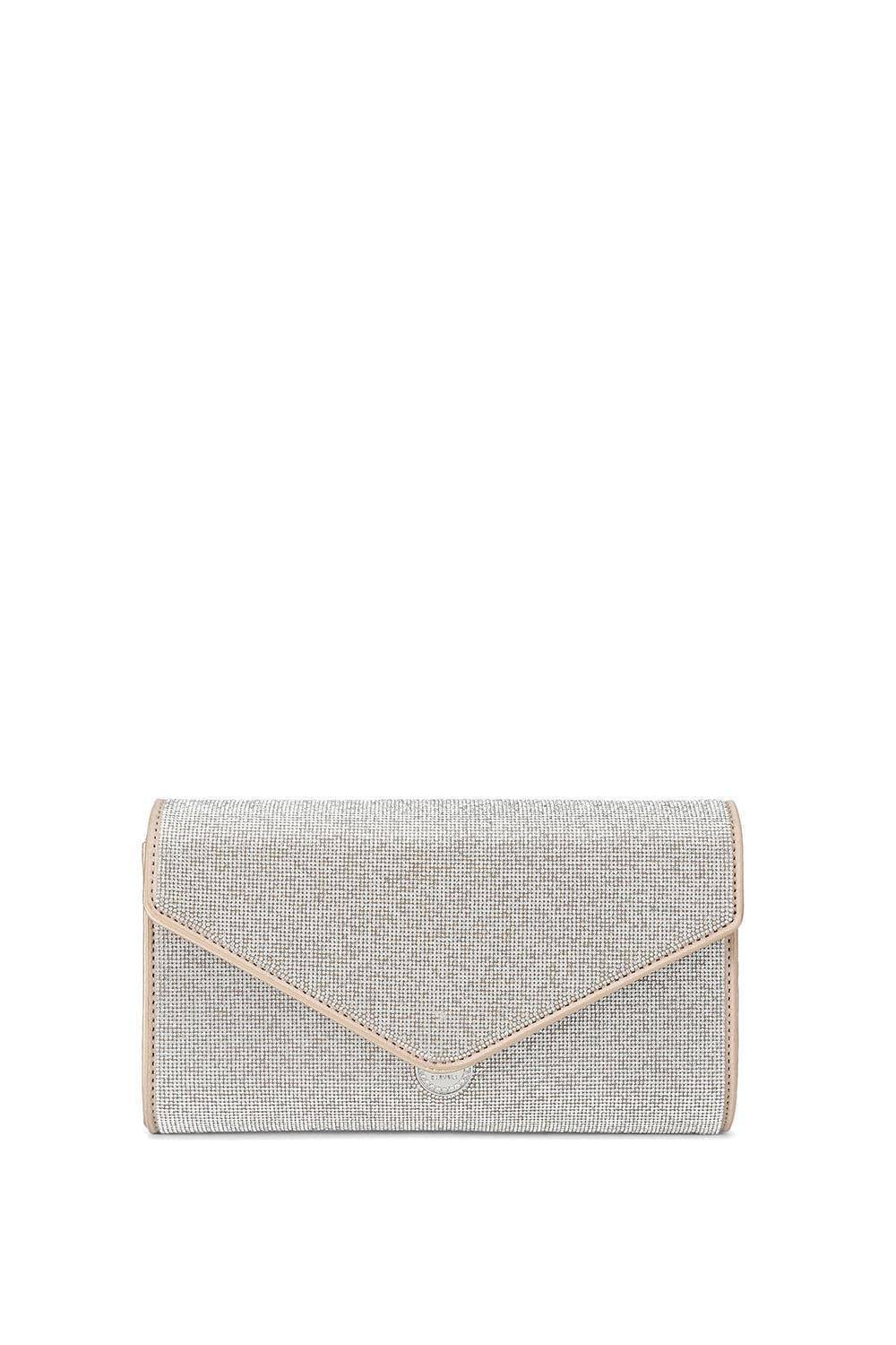 The Carvela Women's Silver Spiral Envelope Clutch Bag is made from satin, crystal.