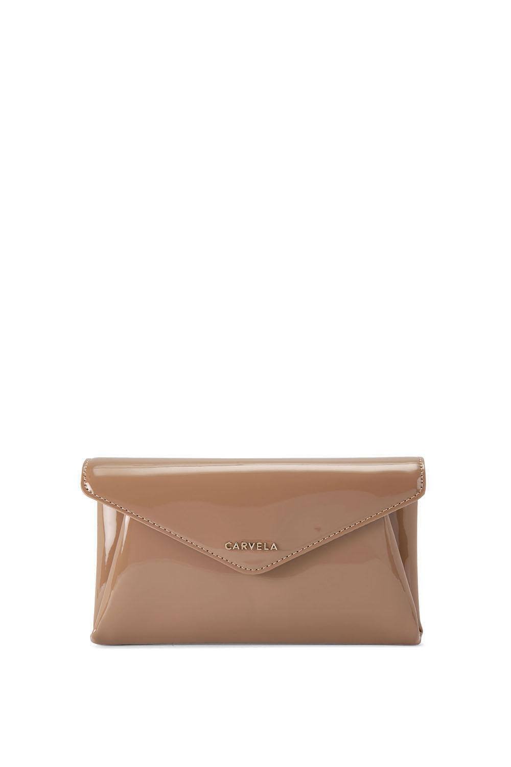 The Carvela Tan Patent Leather Envelope Clutch Bag is available in sizes ONE SIZE.