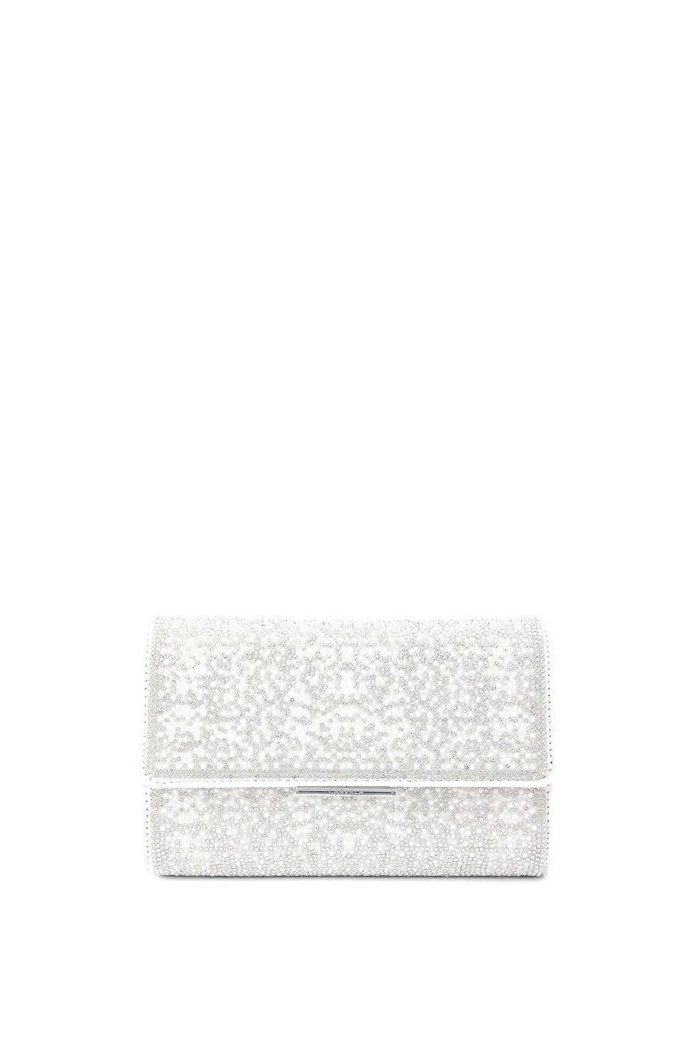 The Carvela Women's 'Anna Clutch Bag' in White is made from crystal.