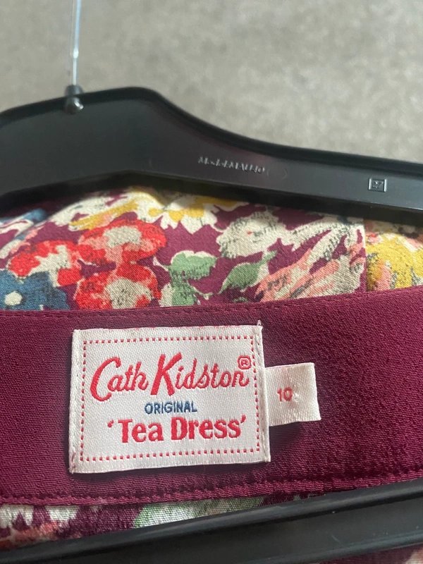 This tea dress from Cath Kidston features a delightful floral print in a burgundy color. It is perfect for casual and smart-casual occasions, thanks to its charming and feminine design.