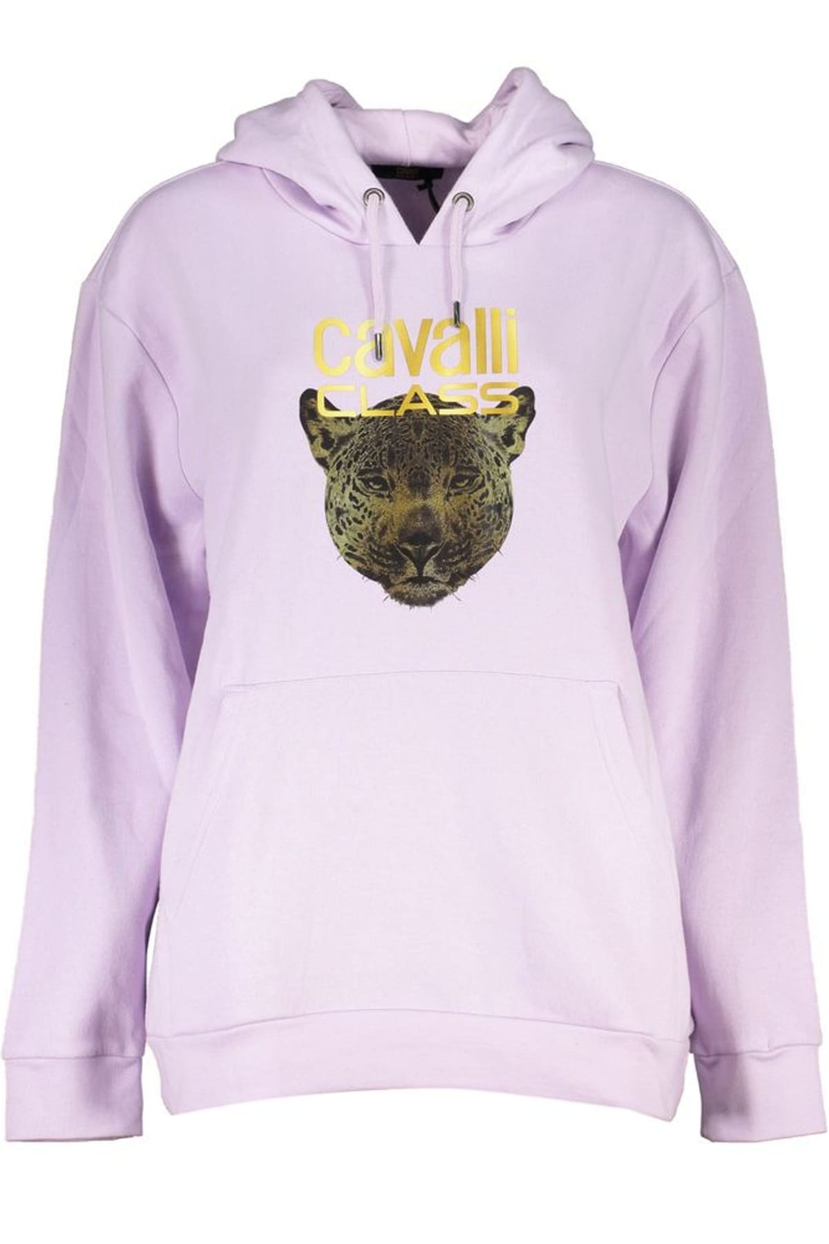 Elevate your everyday style with this distinctive hooded fleece sweatshirt. Crafted from a soft cotton blend, this hoodie offers luxurious, all-day comfort. The striking purple design features a bold leopard graphic and the iconic Cavalli Class logo. Perfect for casual wear.