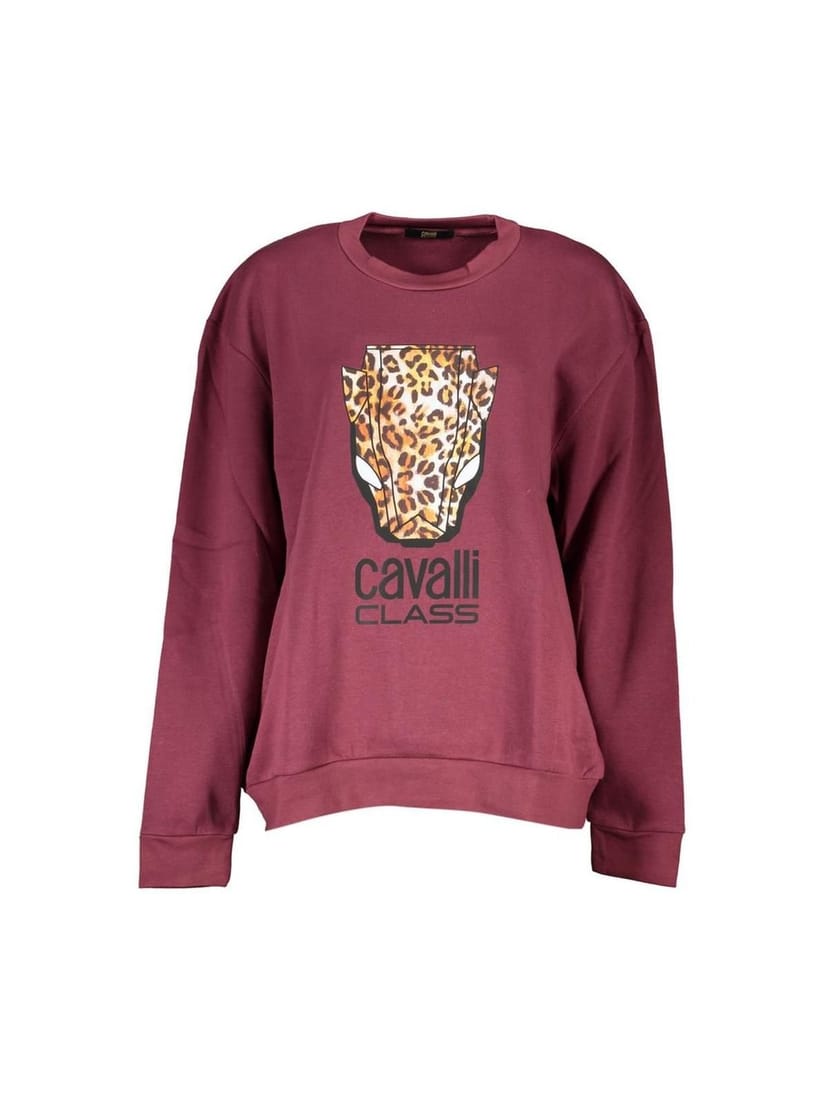 The Cavalli Class Purple Crew Neck Fleece Sweatshirt is made from cotton.