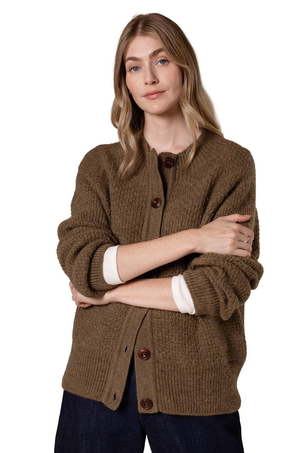 The Celtic & Co Brown British Wool Moss Stitch Cardigan is ideal for casual, everyday, outdoor.