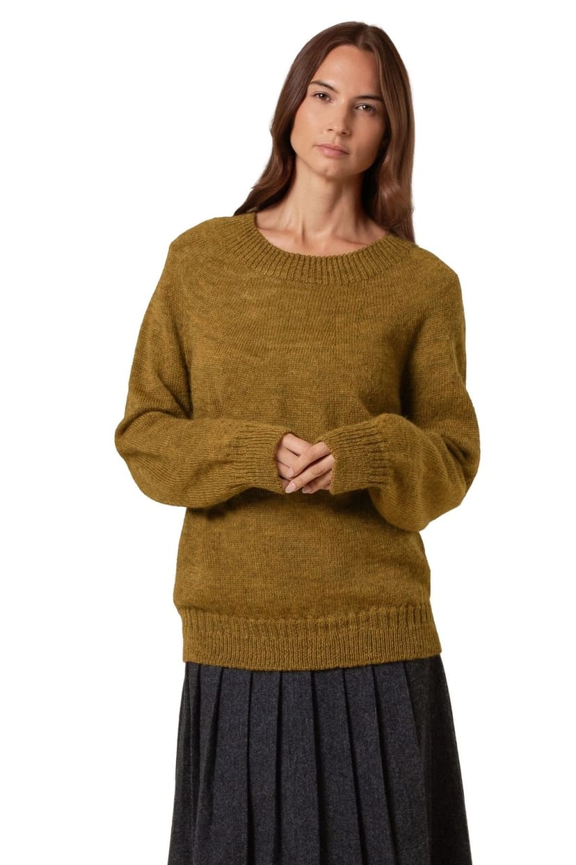 The Celtic & Co Mustard Gansey Stitch Crew Neck Jumper is made from wool.