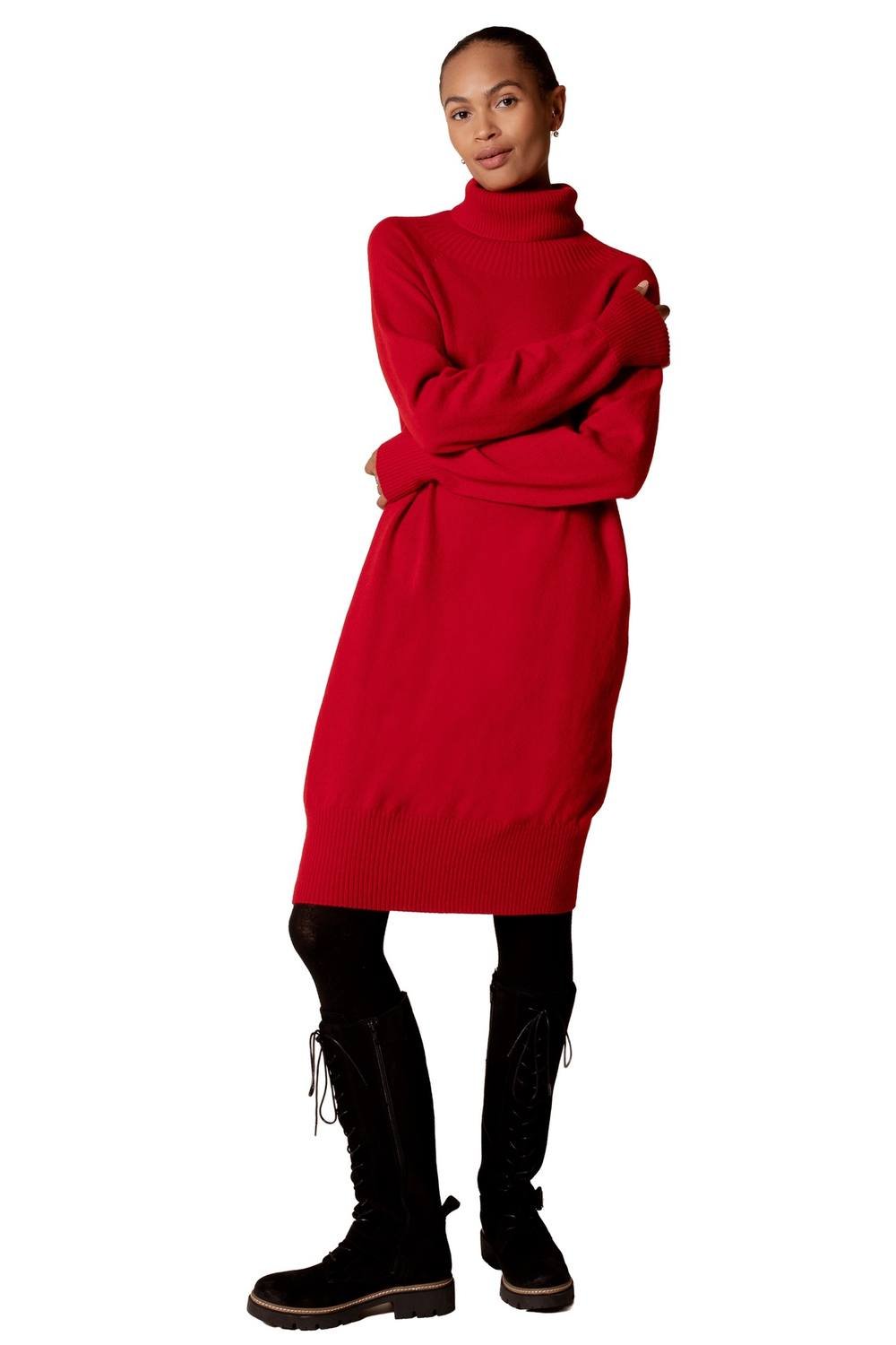The Celtic & Co Red Wool Turtleneck Midi Dress is ideal for casual, evening, date-night.