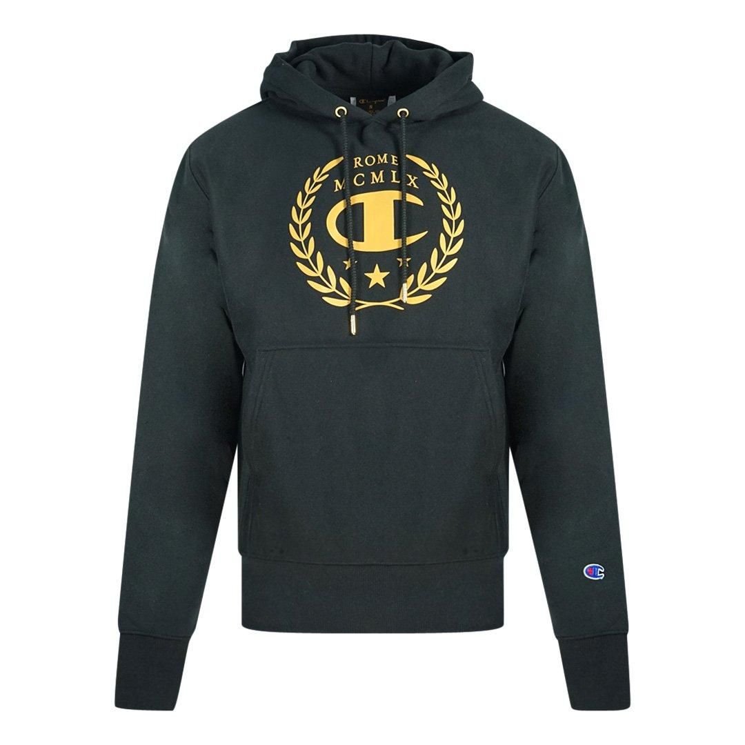 The Champion Men's Rome Logo Black Hoodie is available in sizes XS.