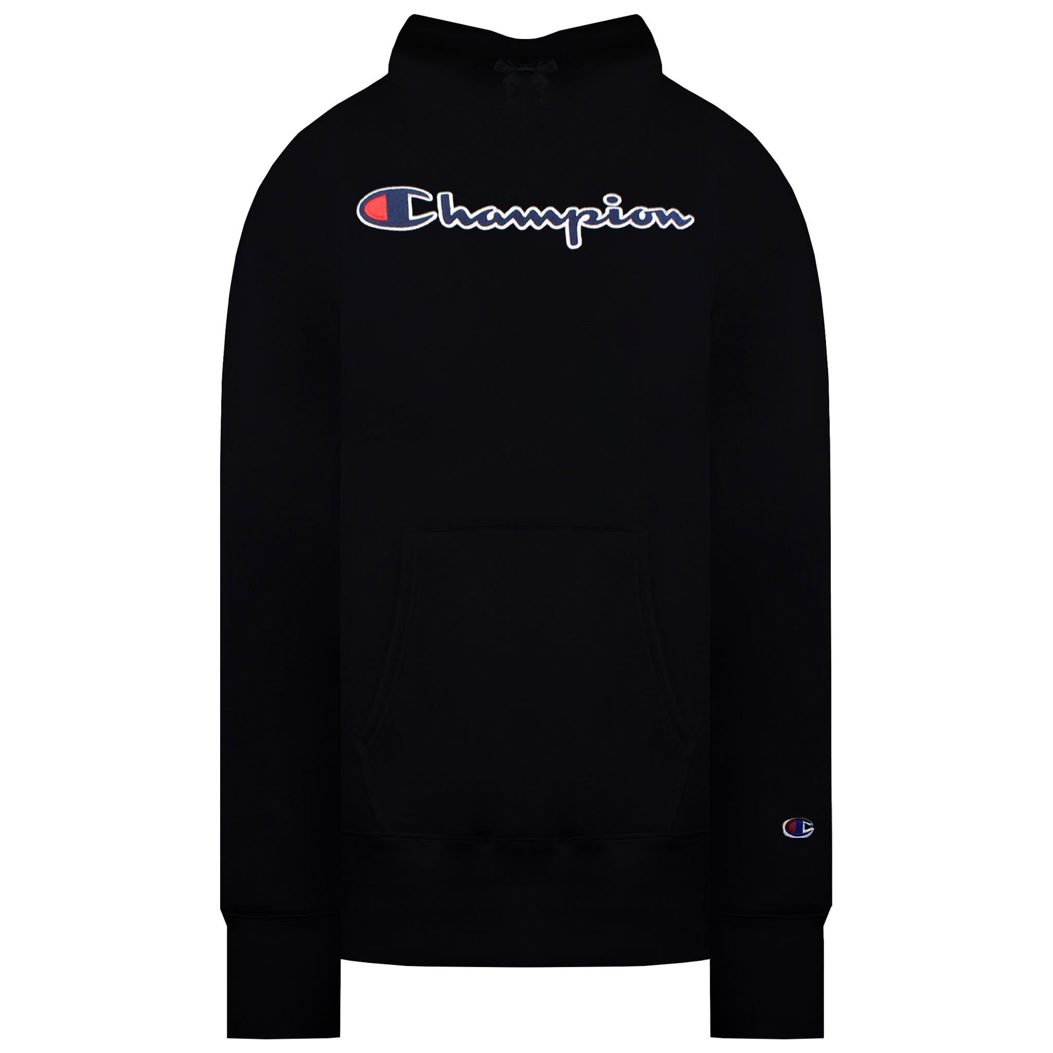 The Champion Men's Script Logo Black Hoodie is ideal for casual, everyday.
