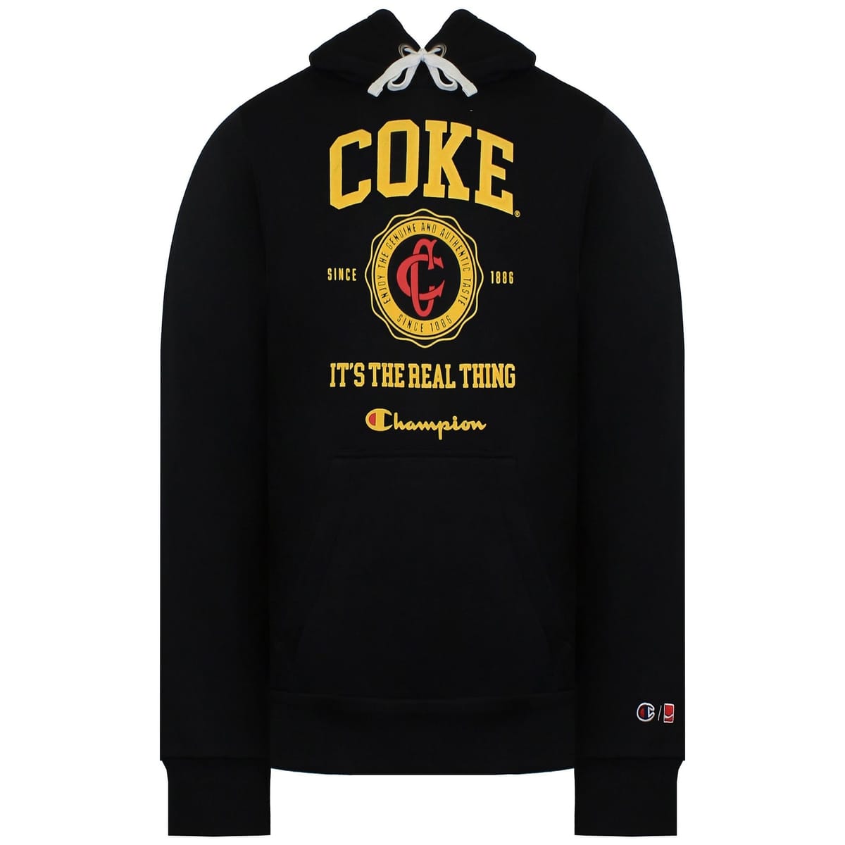 The Champion x Coca Cola Black Hoodie for Men is made from cotton.