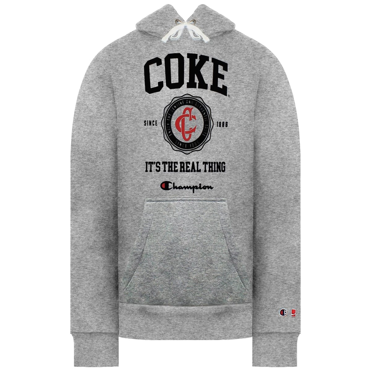 The Champion x Coca Cola Grey Hoodie for Men is made from cotton.