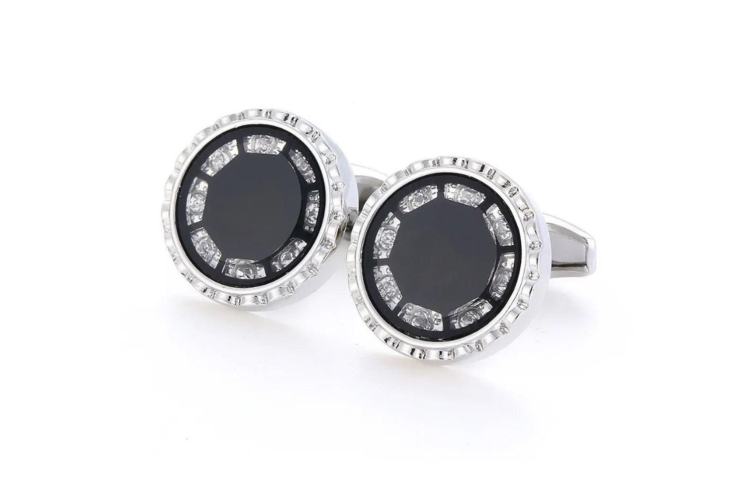 Stylish silver and black cufflinks with ridges and stunning elements. The cufflinks are lightweight and comfortable on the cuff. Comes with a free velvet gift pouch.