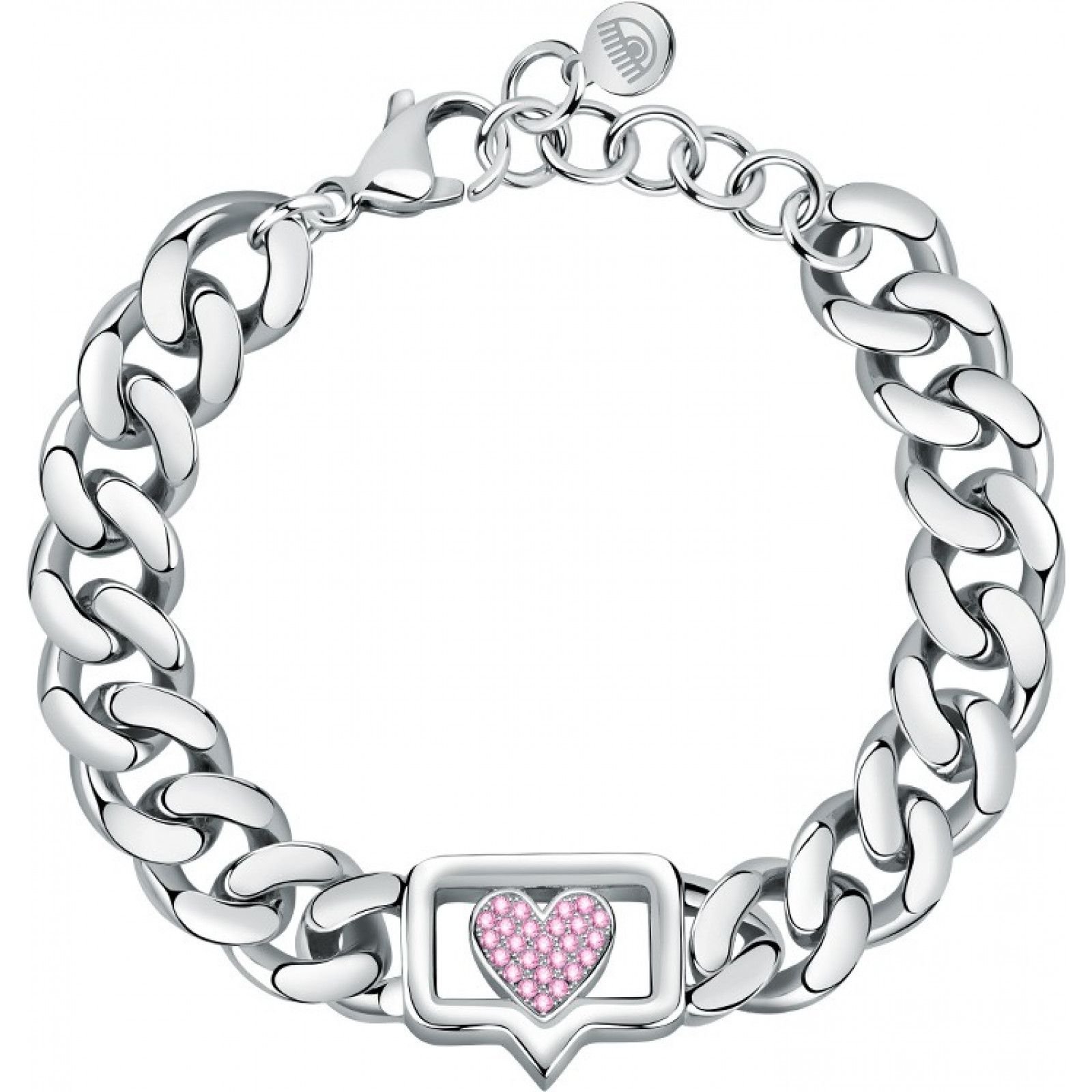 Stylish silver chain bracelet by Chiara Ferragni featuring a pink heart charm. Crafted with high-quality materials, this bracelet adds a touch of elegance to any outfit. Ideal for everyday wear or special occasions.