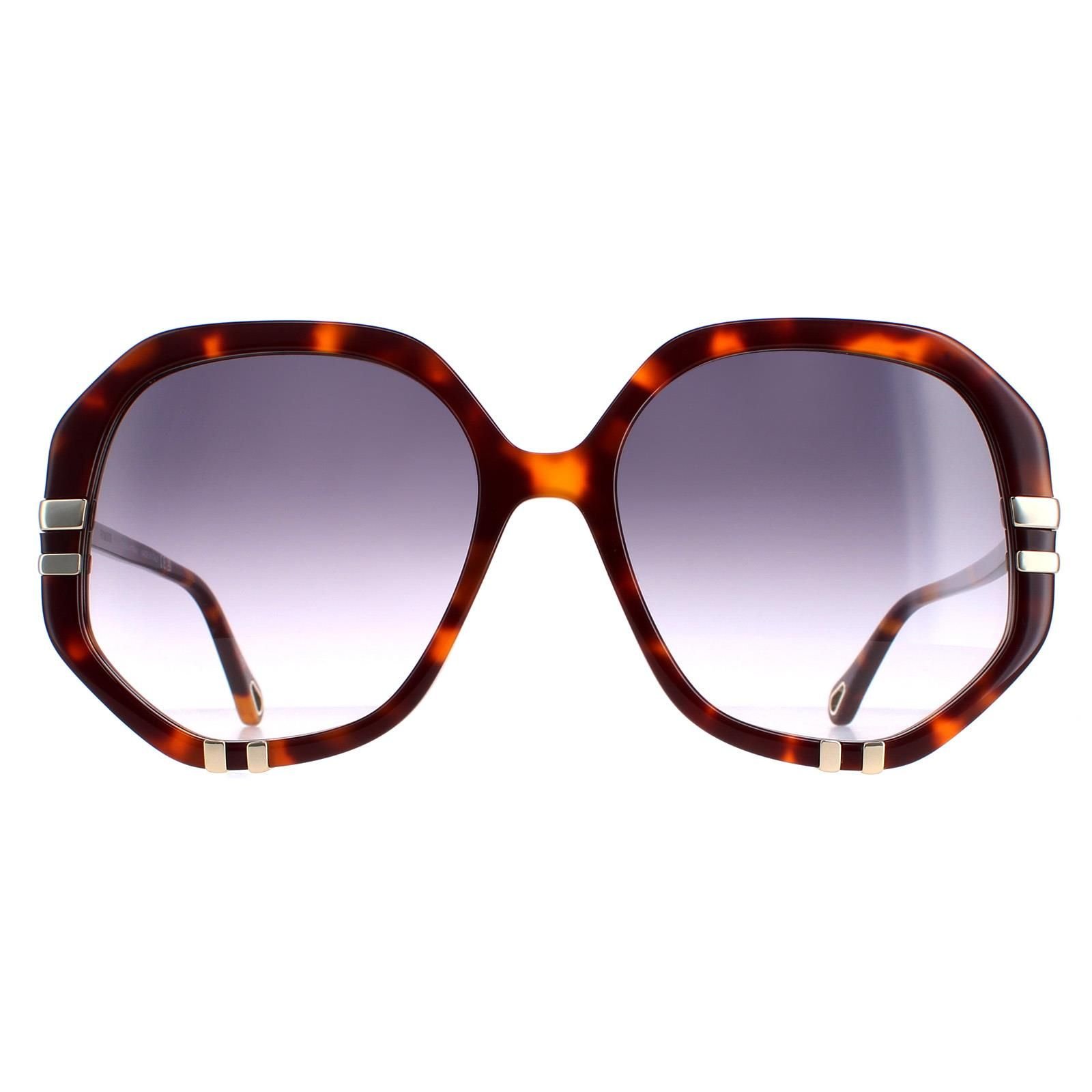 Glamorous hexagonal Chloé sunglasses in brown tortoise gradient. Crafted from lightweight acetate, these chic frames feature a brand logo on the slender temples for authenticity. Ideal for adding a touch of elegance to any outfit.