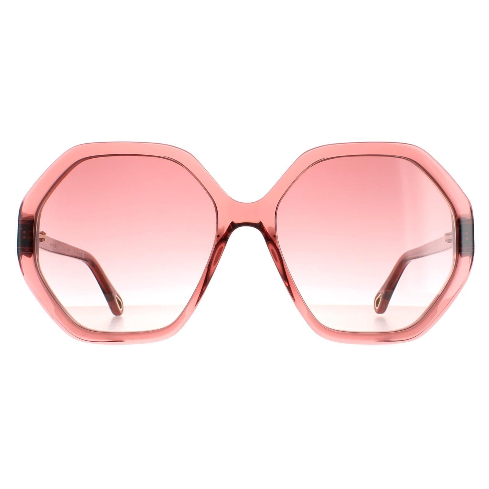 Stylish round pink crystal pink brown gradient sunglasses from Chloé. Crafted from lightweight acetate, these glasses feature a hexagonal shape and brand logo on the temples.