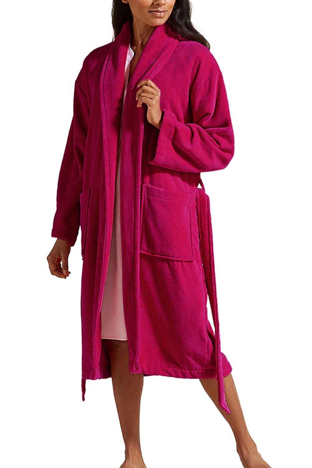 The Christy Raspberry Velour Bath Robe for Women is ideal for casual, evening, lounge.