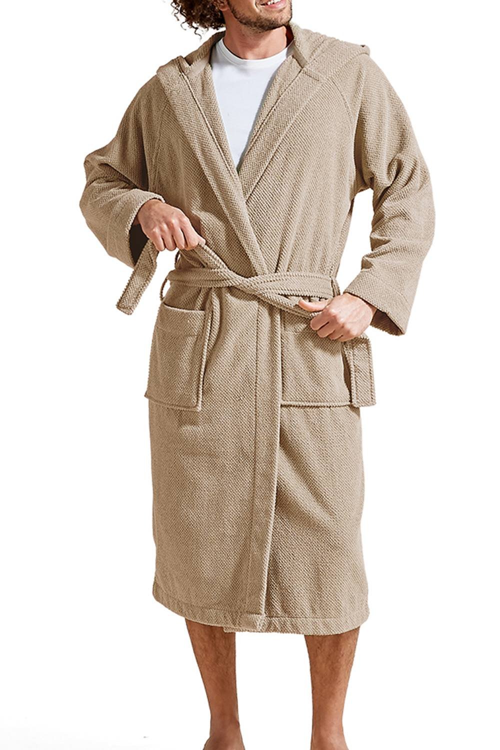 The Christy Men's 'Brixton' 100% Cotton Hooded Bath Robe in Stone is ideal for casual, home, lounge.