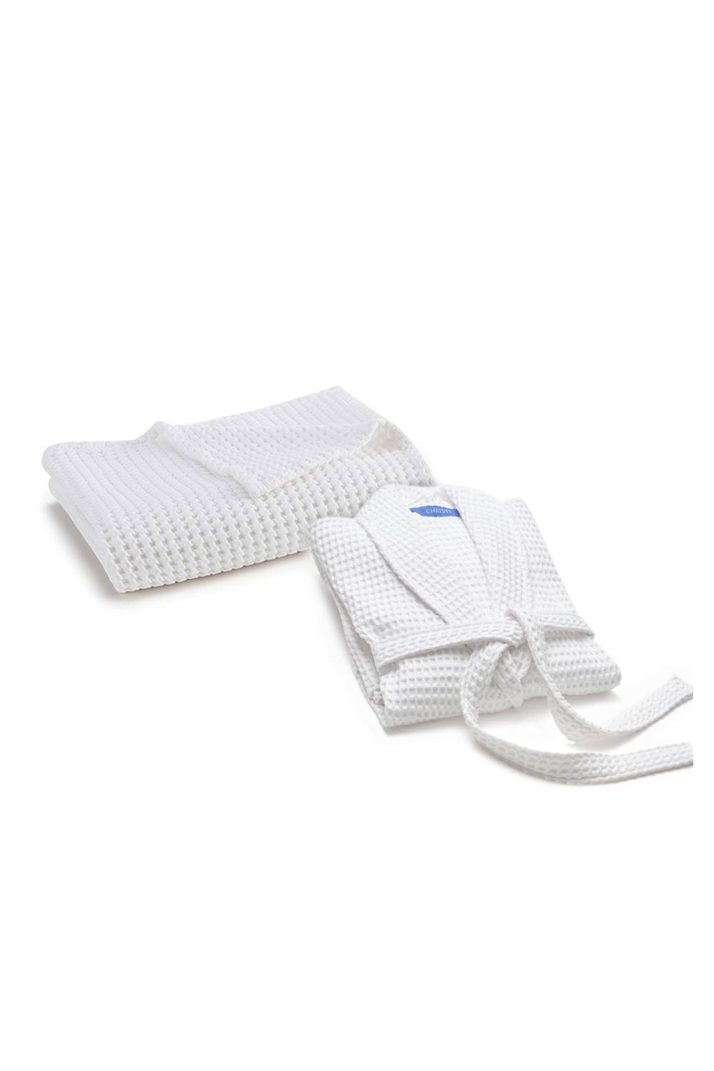 The Christy White Waffle Kimono Robe & Bath Sheet Gift Set is available in sizes S/M.