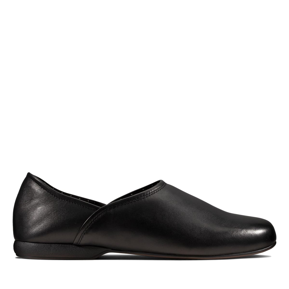 Classic black leather slipper with a slimline sole, offering lightweight wear and easy foot entry. The heel folds down for backless wear, making it perfect for laid-back days around the house.