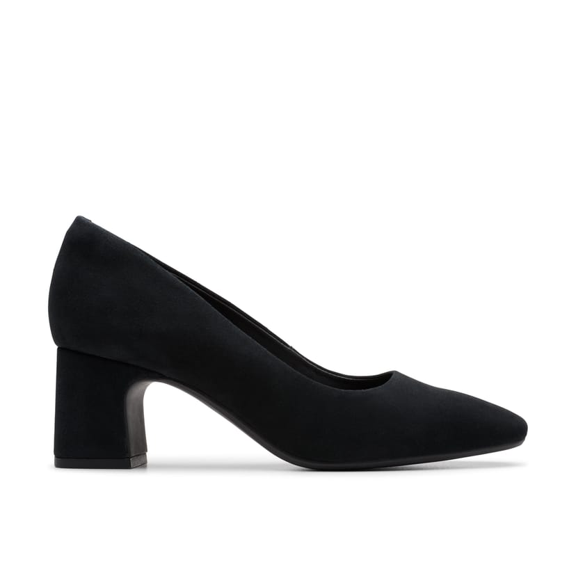 The Clarks Women's Fernie Court Black Suede Court Shoes is available in sizes 4-standard fit, 5.5-standard fit, 5-standard fit, 6.5-standard fit, 6-standard fit, 7-standard fit, 8-standard fit.