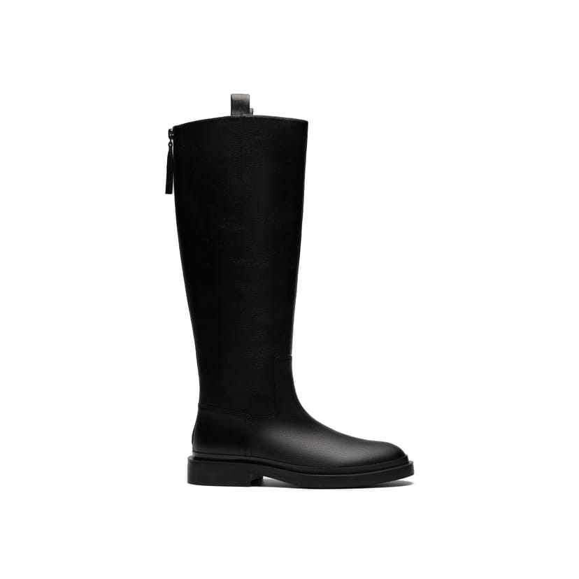 Sleek Clarks Previa Hi knee-high boots in black leather. Featuring a contemporary design with a zipper closure and cushioned footbed for comfort. Ideal for versatile styling from city to country.