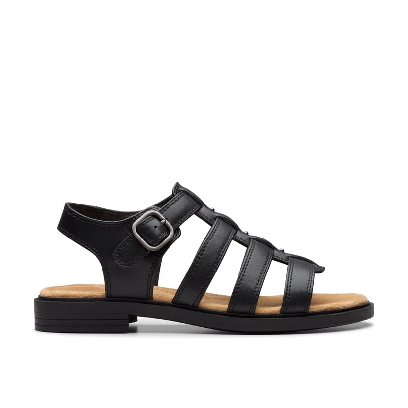 The Clarks Women's Trivanni Lux Black Leather Flat Sandals is ideal for everyday, casual, outdoor.