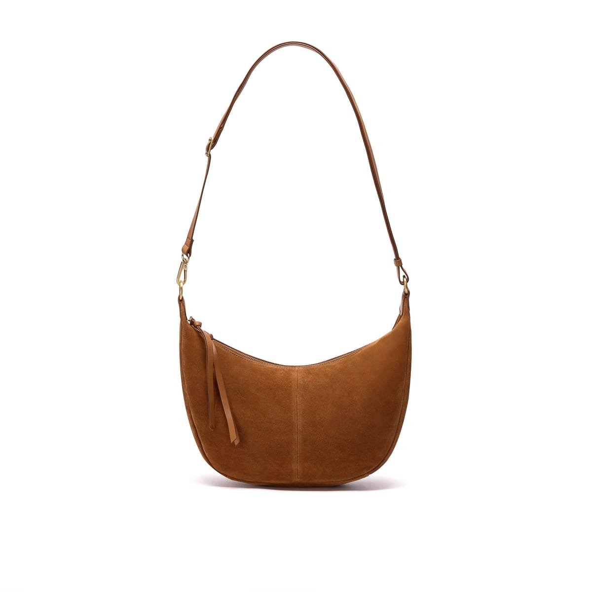 View Debenhams's returns policyThis Clarks Willow Moon shoulder bag is a versatile accessory in tan suede, featuring a sleek half-moon silhouette. Ideal for everyday use, it can be worn over the shoulder or as a cross-body bag.