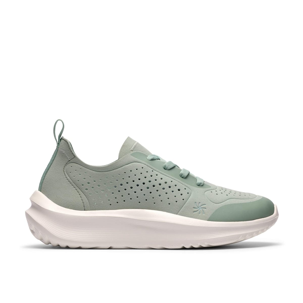 Stylish Clarks Solevana Tie trainers in seafoam green. Featuring a breathable upper with perforations for added ventilation, these trainers offer all-day comfort and effortless style. Perfect for casual outings and everyday wear.