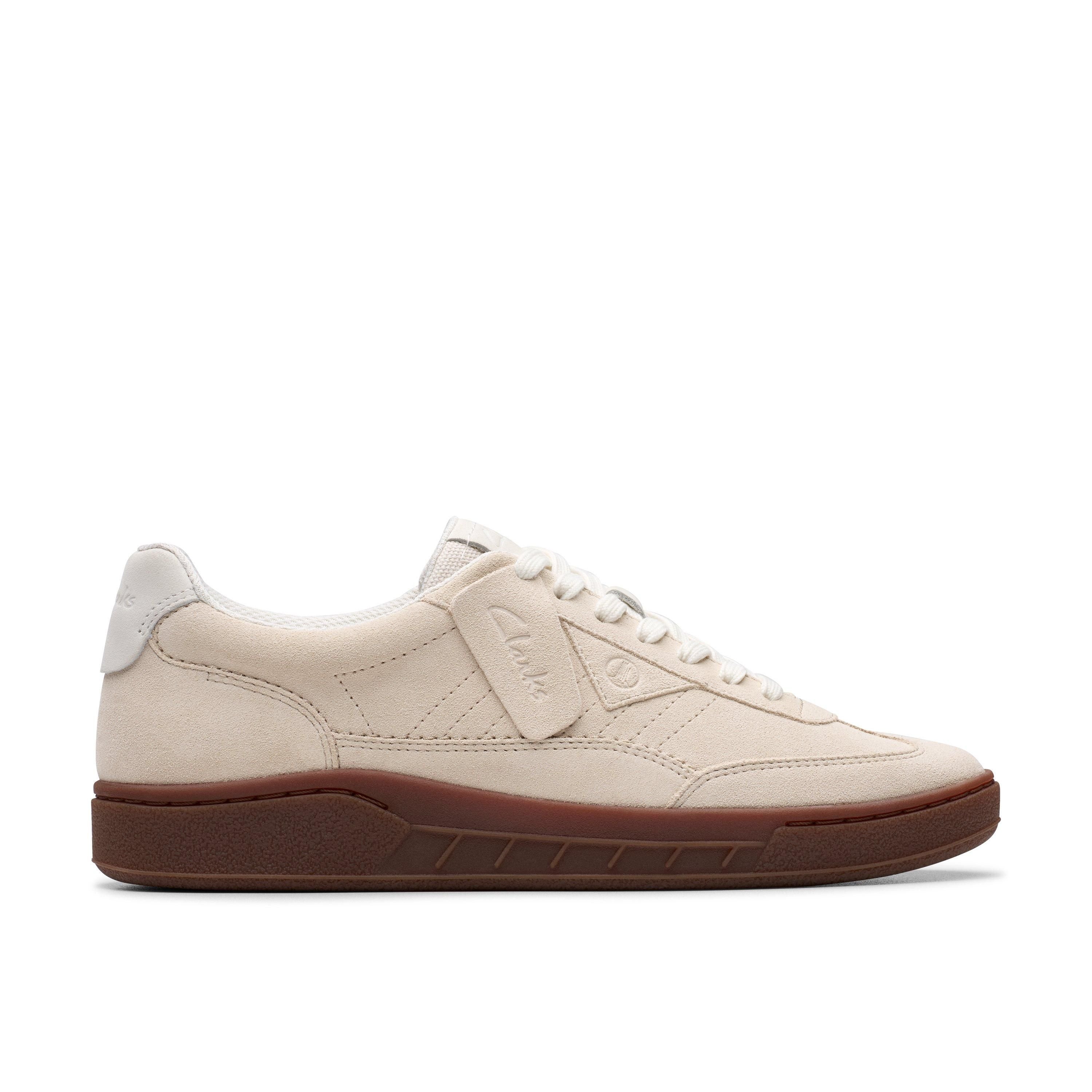 The Clarks Men's Craft Rally Ace Off-White Suede Trainers is available in sizes 7.5-STANDARD FIT, 8.5-STANDARD FIT.