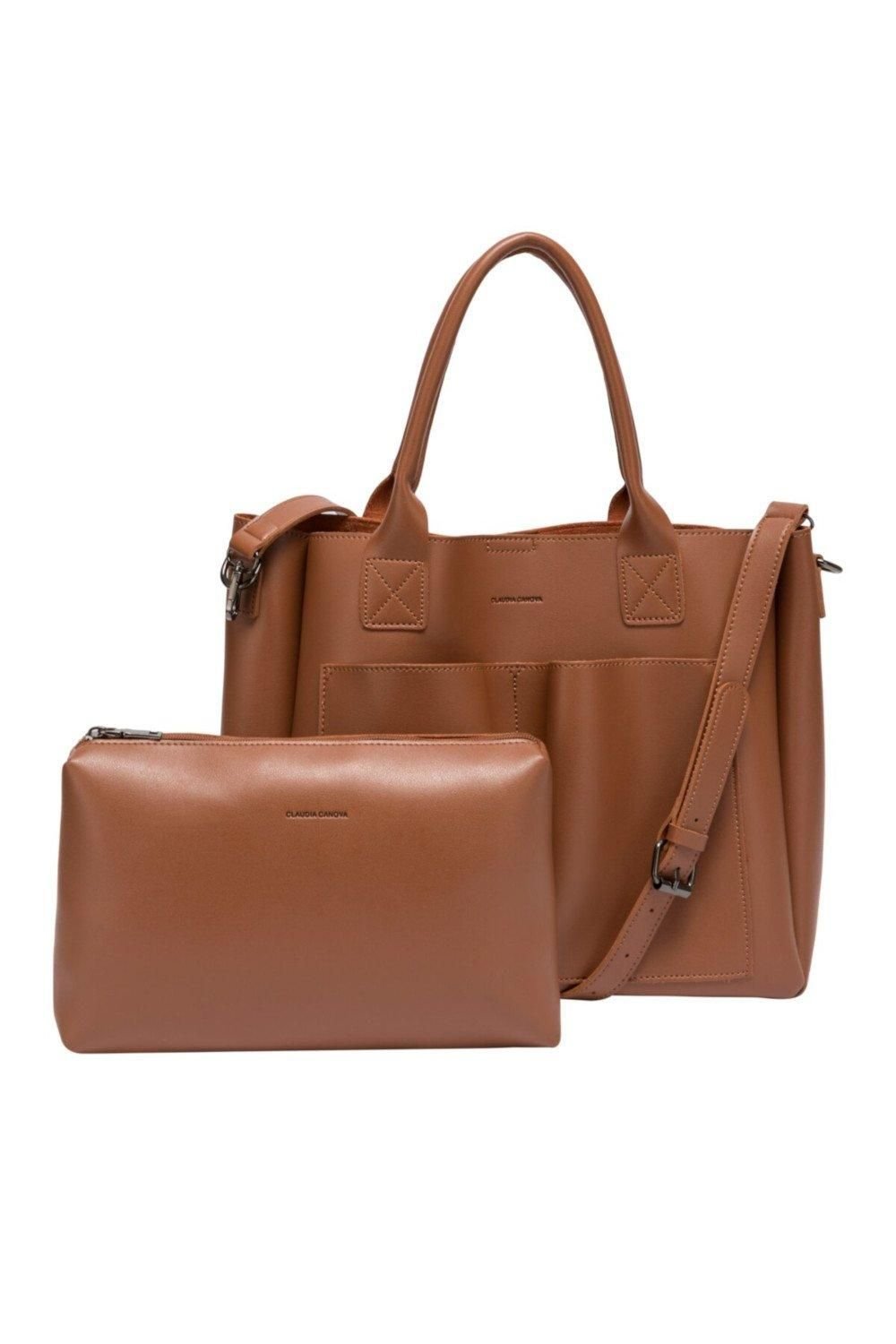 The Claudia Canova Tan Leather XL Front Pocketed Tote Bag is available in sizes ONE SIZE.