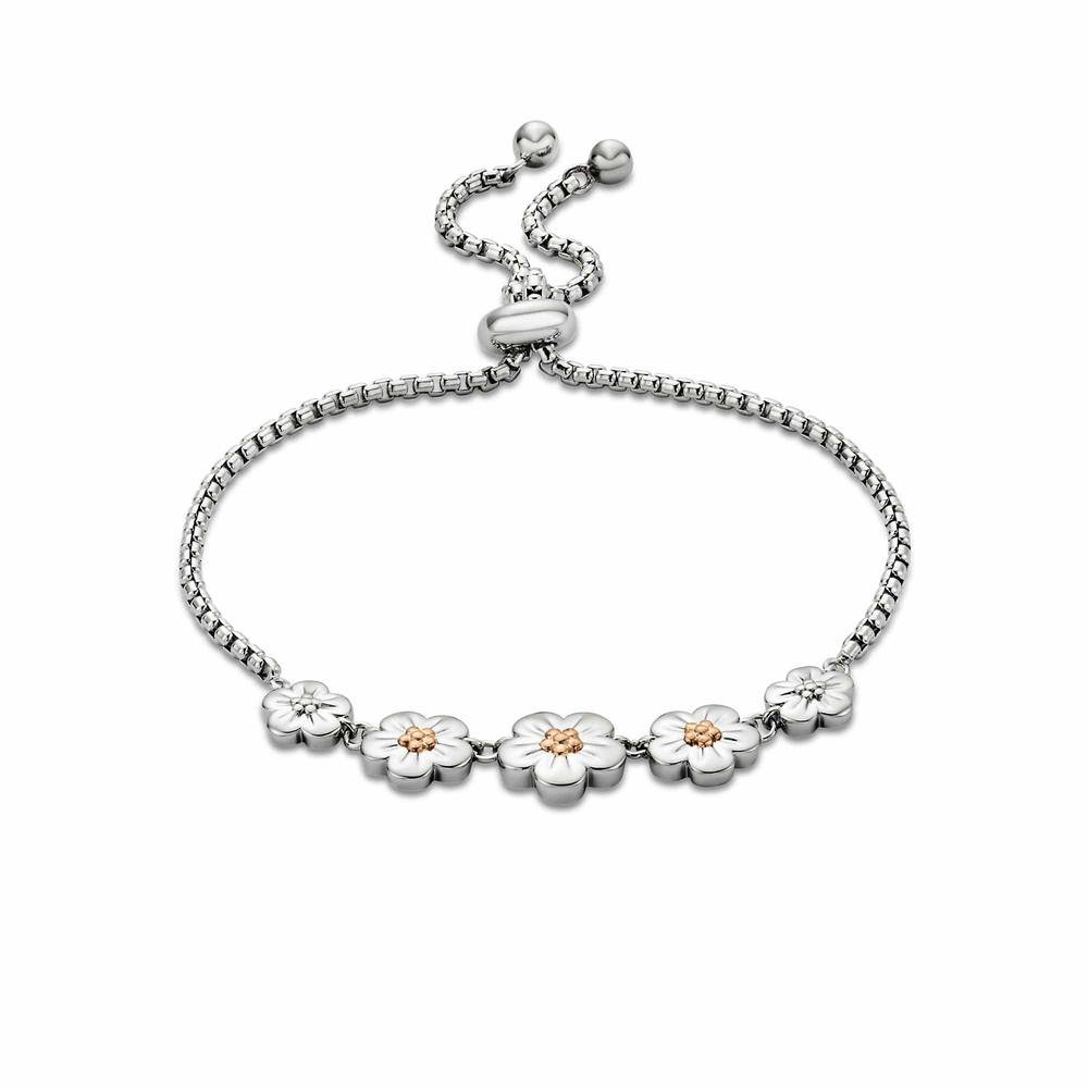 Charming Sterling Silver Forget-Me-Not Adjustable Bracelet inspired by the woodland flower. Featuring delicate flower charms and a polished finish, it's perfect for any occasion.