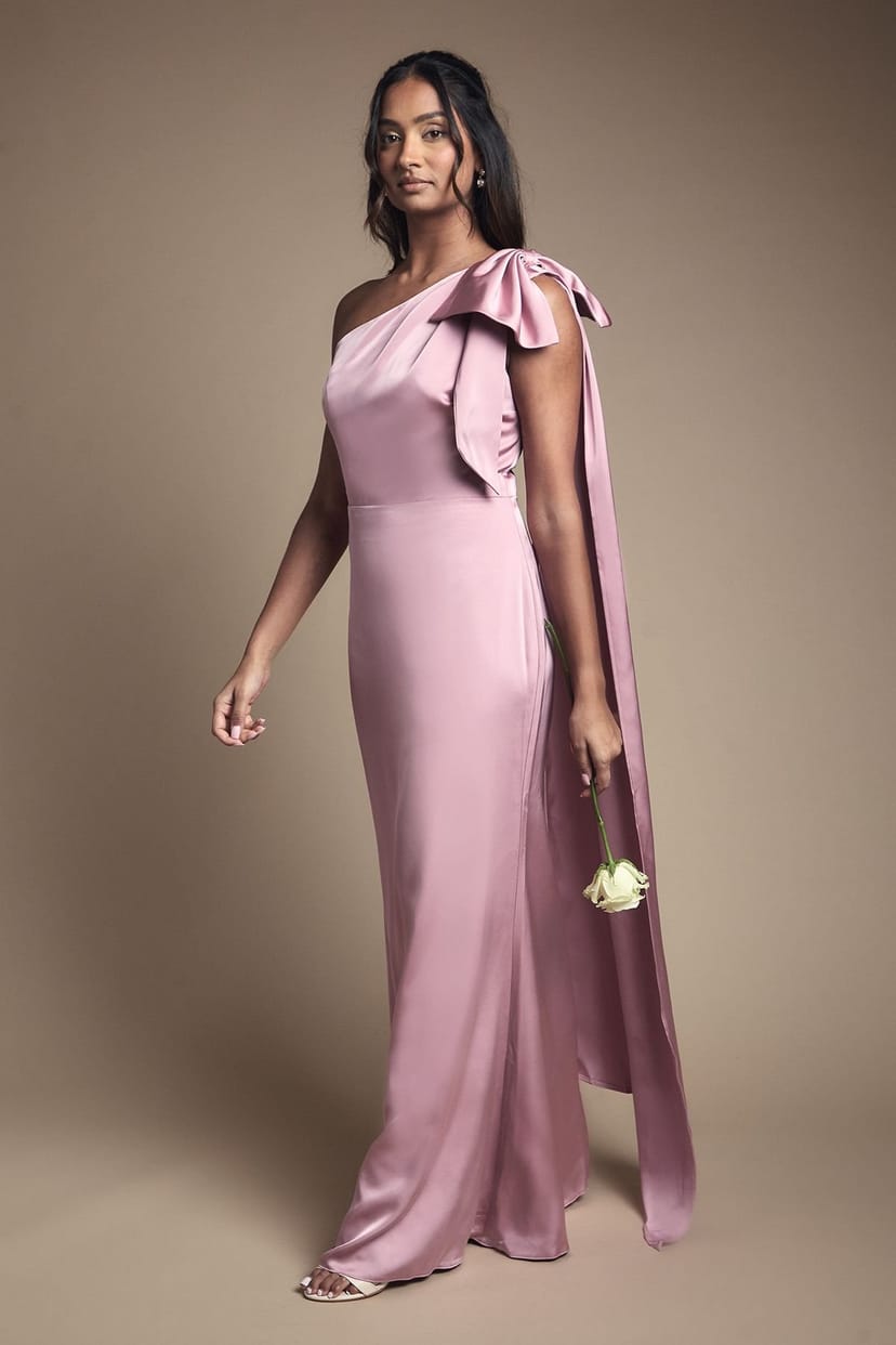 The Coast Antique Rose Satin One Shoulder Bridesmaid Dress is made from satin.