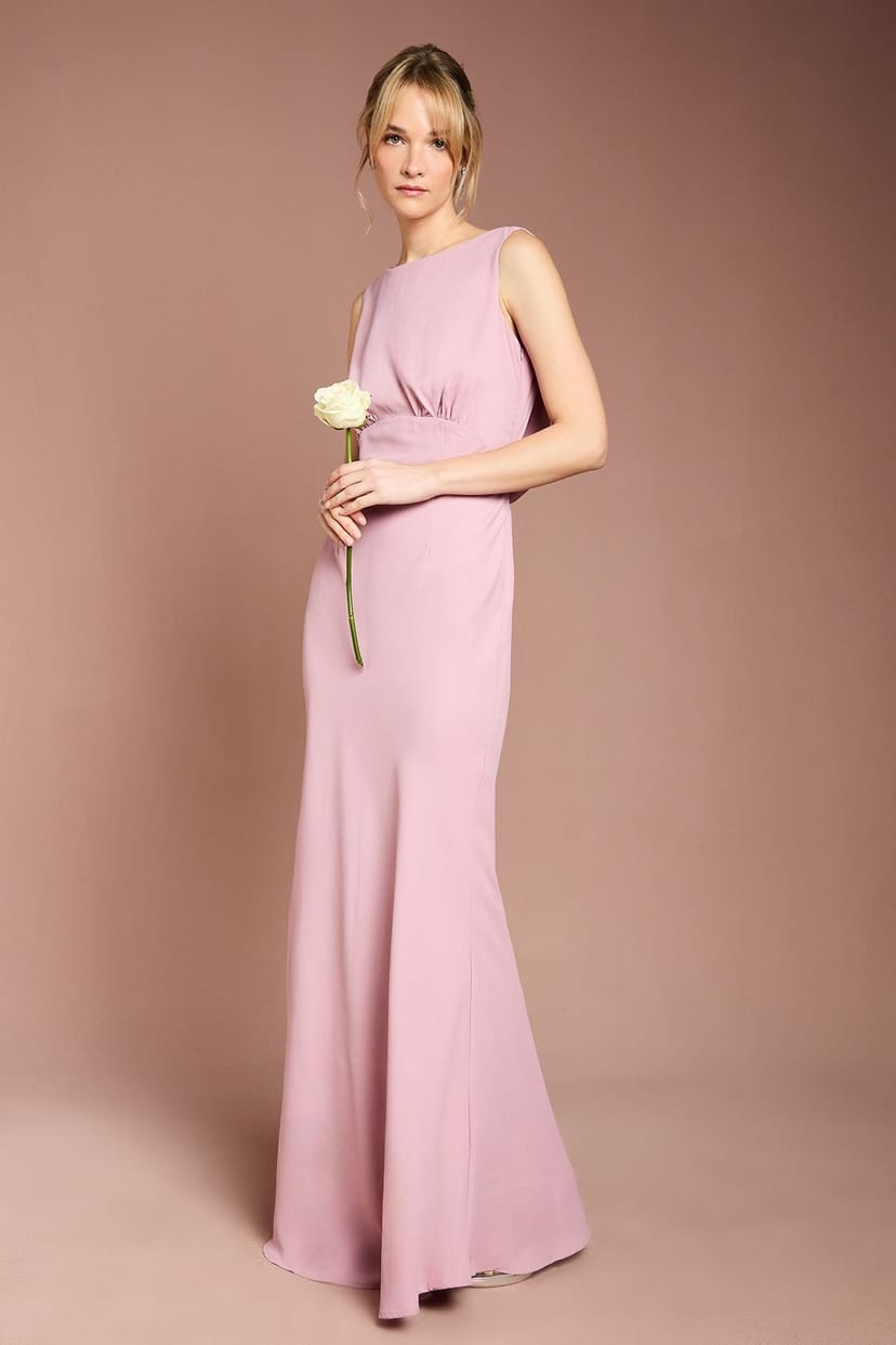 The Coast Antique Rose Sleeveless Cowl Back Maxi Bridesmaid Dress is made from crepe.