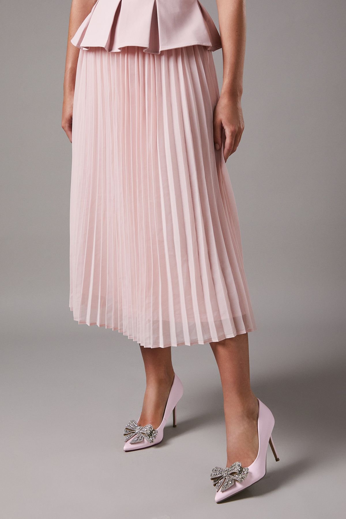 The Coast Ballerina Pink Satin Bow Stiletto Heels is made from satin.