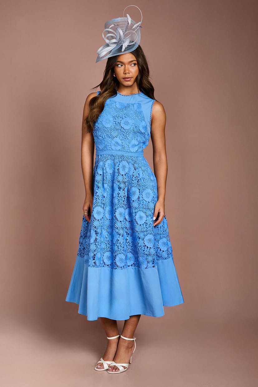 The Coast Blue Lace Sleeveless Midi Dress is ideal for evening, date-night, party.