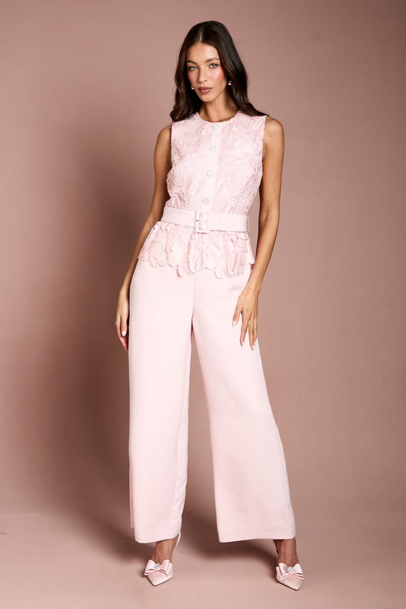 The Coast Blush Lace Bodice Crepe Jumpsuit is ideal for evening, date-night, party.