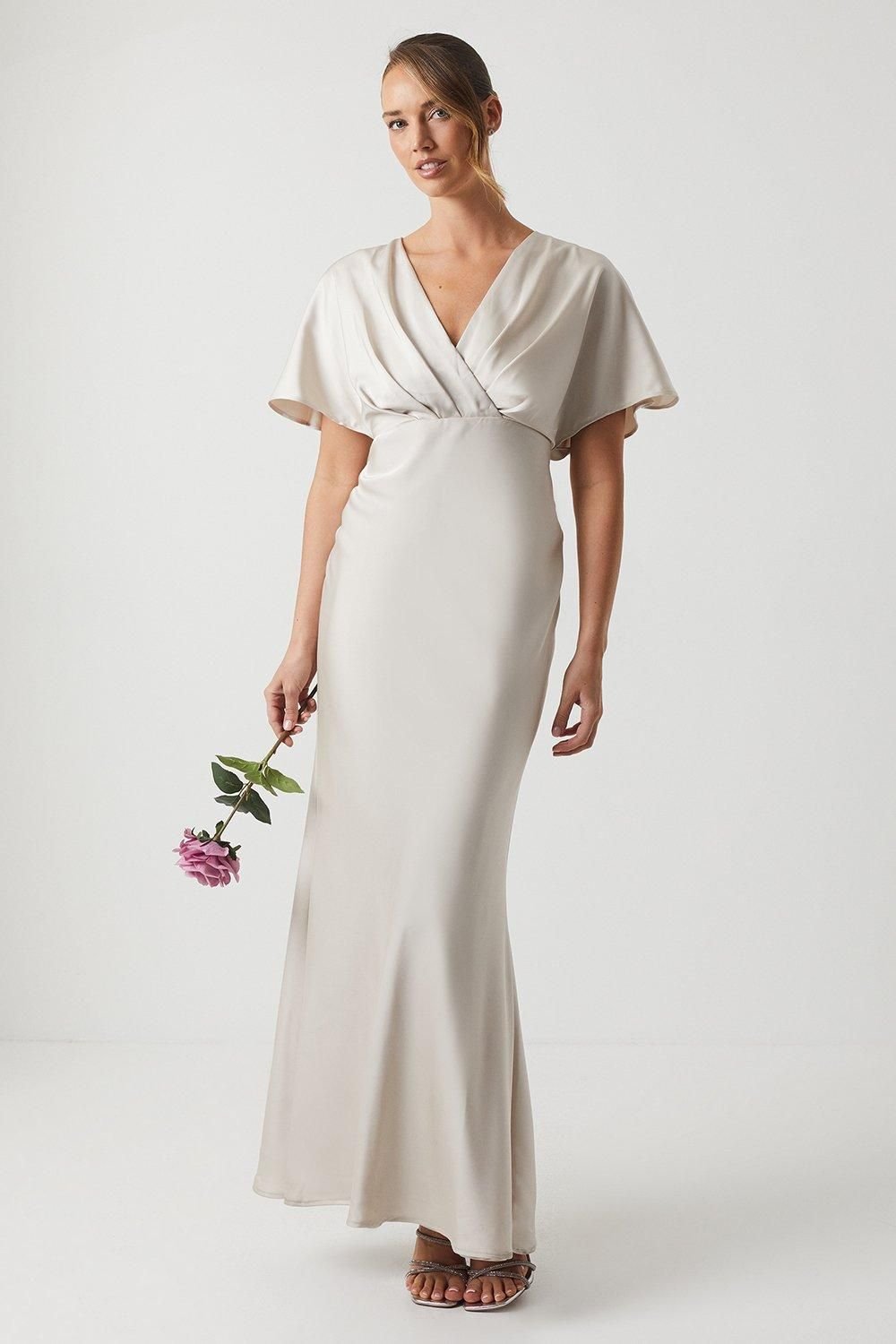 The Coast Champagne Satin Batwing Sleeve Bridesmaid Dress is made from satin.