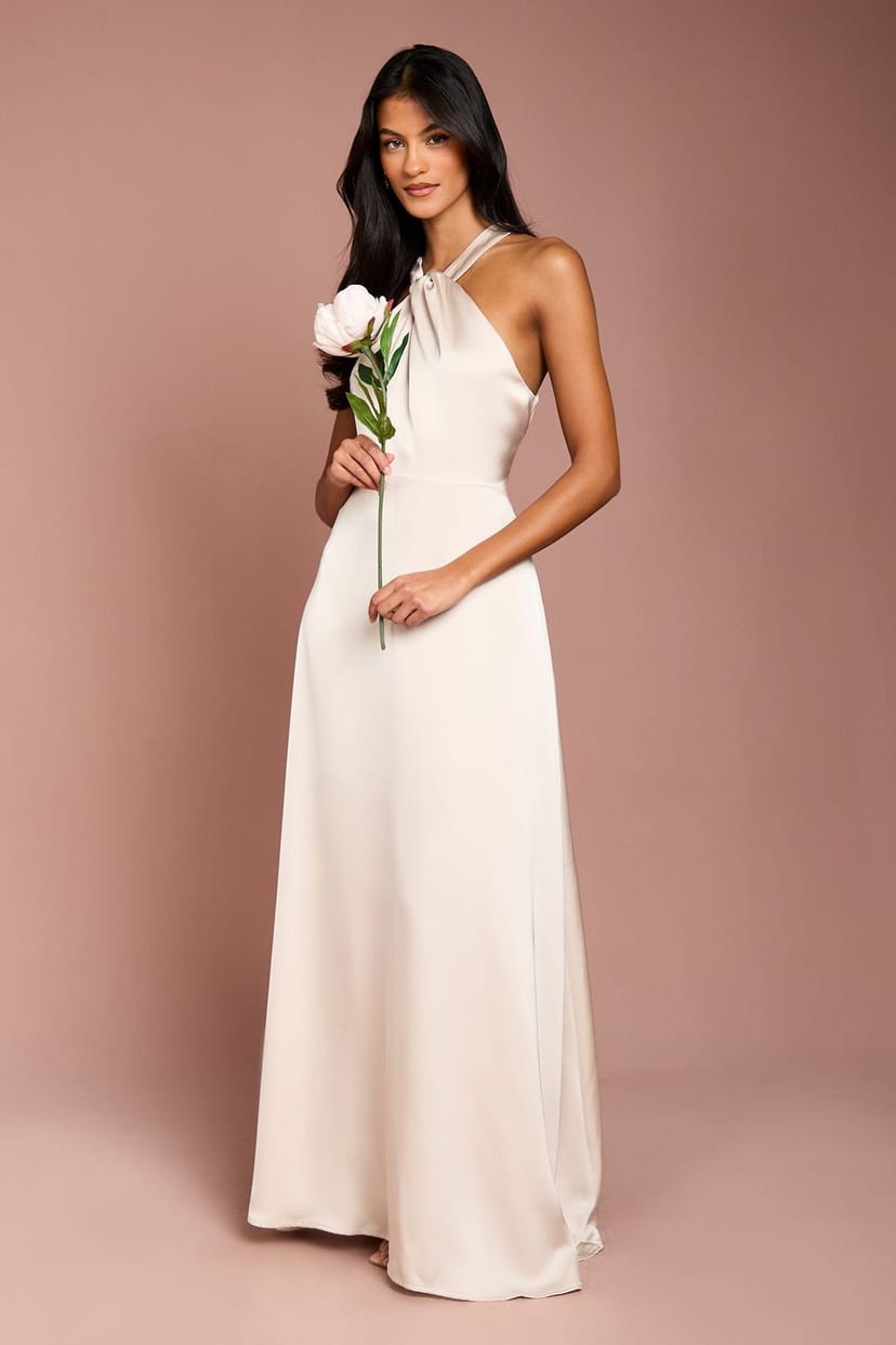 The Coast Champagne Satin Maxi Bridesmaid Dress is ideal for evening, date-night, party.