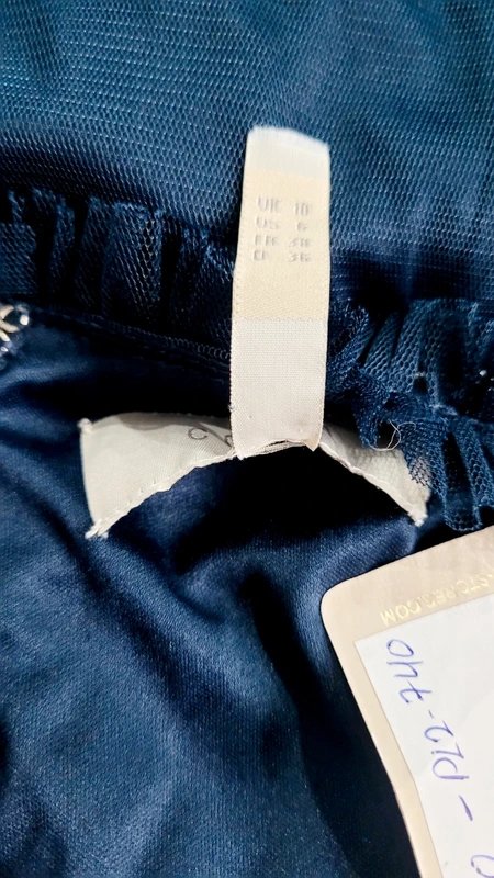 The Coast Navy Mesh Sequin Short Cocktail Dress is available in sizes S.