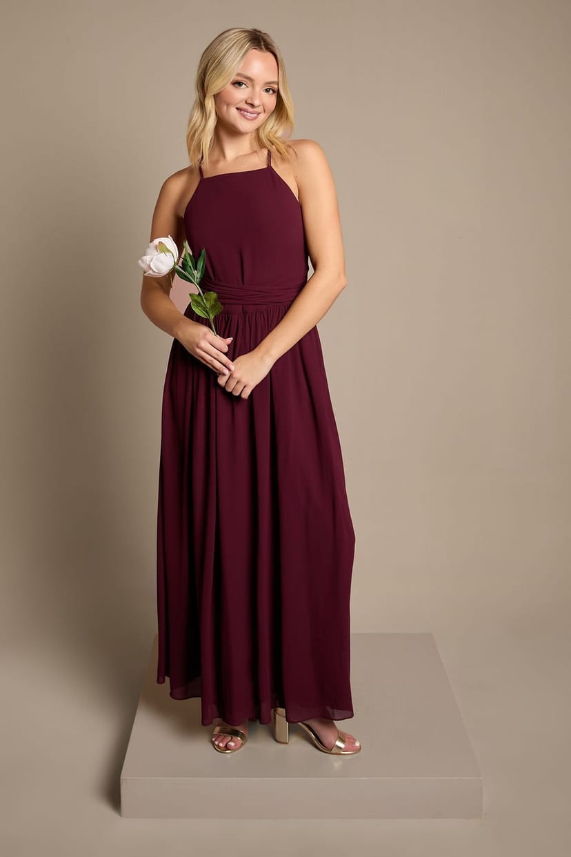 The Coast Fig Chiffon Cami Bridesmaid Dress is available in sizes 14-15 years.