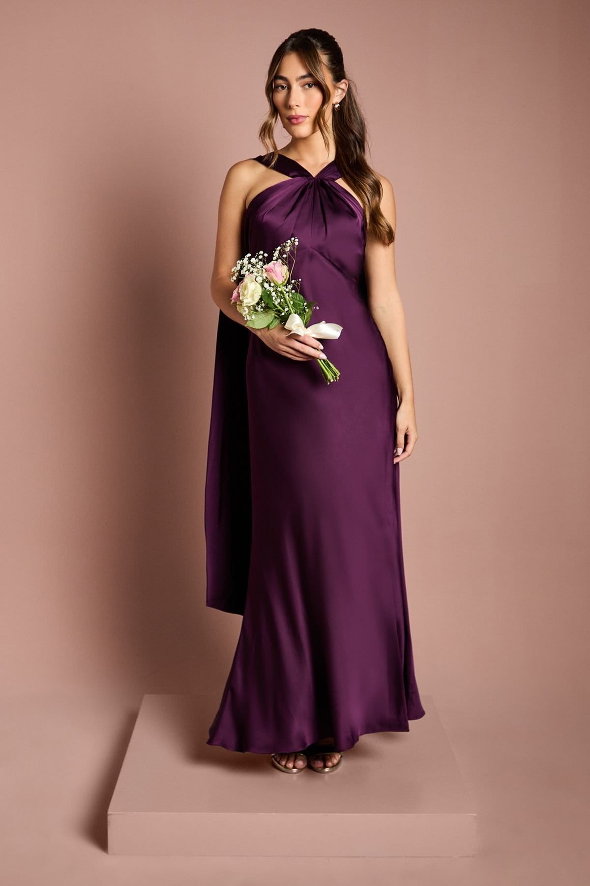 The Coast Purple Satin Halterneck Maxi Bridesmaid Dress is ideal for wedding, evening, formal.