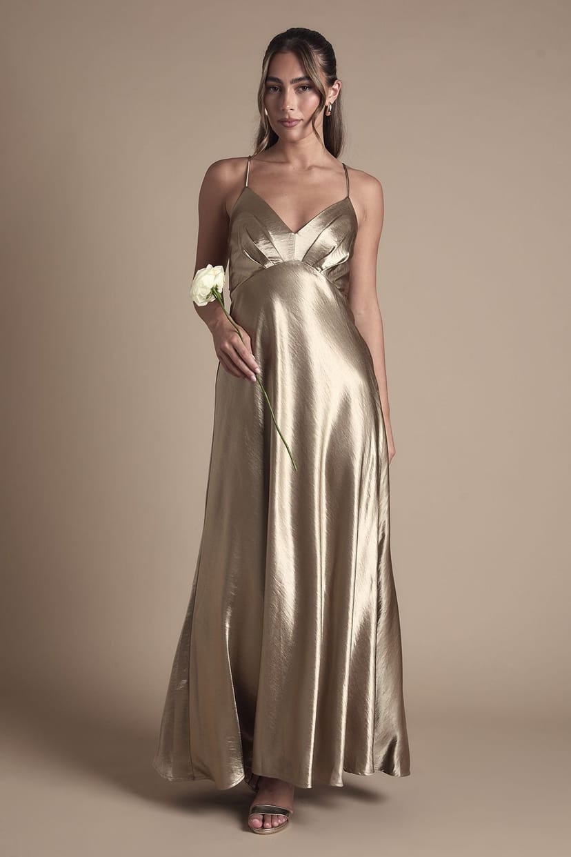 The Coast Metallic Gold Satin Bridesmaid Maxi Dress is made from satin.