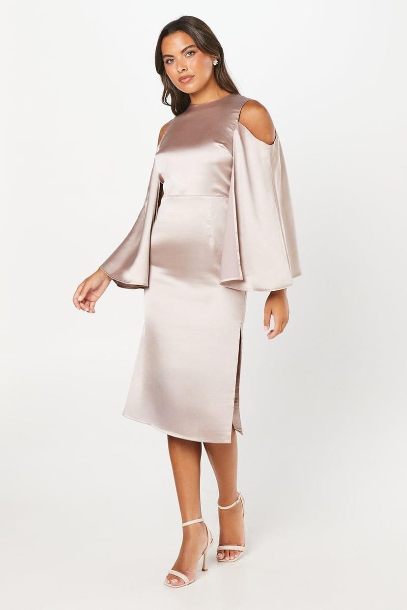 The Coast Mink Satin Cape Back Midi Wedding Dress is ideal for wedding-guest, evening, formal.