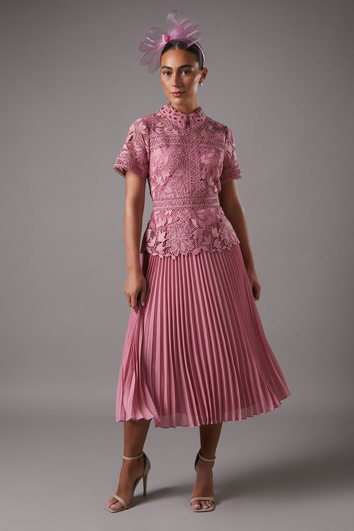 The Coast Pink Lace Pleated Dress for Women is made from lace, polyester.